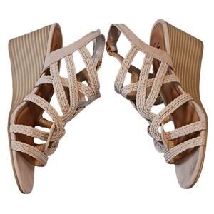 Y NOT? Braided Beige wedge sandals size 8.5 Dressy Strappy Sandles Barely EUC