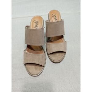 Y Not Women's 10M Hope Block Heeled Sandal Tan Double Band Slip On