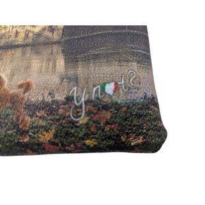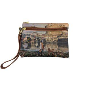 Compact and stylish wristlet featuring a European scenic print. Designed for convenience, it includes a secure zipper closure and interior pocket for organization.