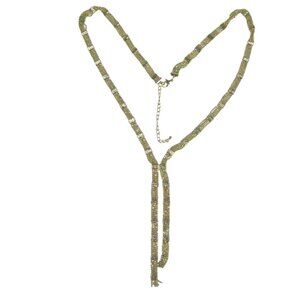 Y Shaped Necklace Goldtone Chain 28 inch Vintage Tassel Modern Sleek Segmented