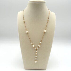 Y Shaped Station Necklace Gold Tone 16" Imitation Pearl Lobster Clasp