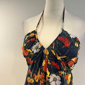 Y by Amir Slama Navy Floral Halter Maxi Dress