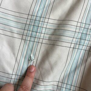 - White and blue plaid loose baggy surf shorts from Quiksilver