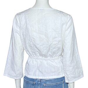 Y2K 100% Cotton White Boho Embroidered Tie Waist Peasant Top Cottagecore XS/S