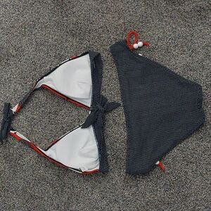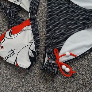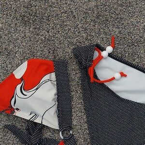 Y2K 2 Piece Polka Dot Bikini Beaded Abstract Pattern Top XL Beach Boho