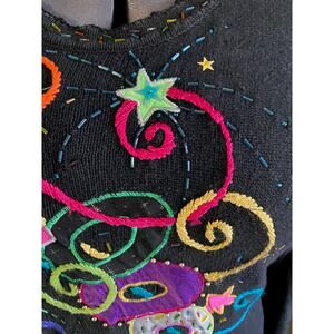 rock Y2K fashion with this bright and playful embroidered sweater.