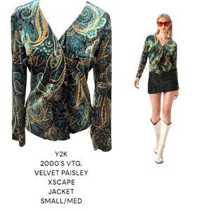 Y2K 2000'S VELVET PAISLEY SPARKLY JEWEL TONE JACKET S/M XSCAPE