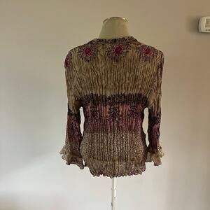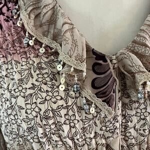 Y2K 2000s Boho Floral Print Beaded Ruffle Collar Blouse Plus Sz 1X Fairy Grunge