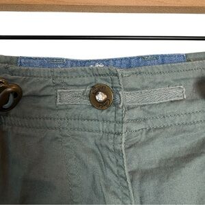Y2K 2000s Candie’s Embroidered Floral Green Low Rise Cargo Gaucho Shorts Capris