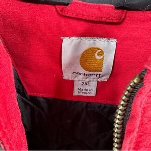 The Y2K 2000s Carhartt Men's 100809 607 Alabama Jacket is a limited edition size 2XL garment made from 100% cotton canvas material. This red jacket features a lined interior for added warmth and comfort, stylized with the Carhartt Alabama Crimson Tide design. Perfect for men looking for a high-quality, versatile outerwear option with a unique and recognizable style.