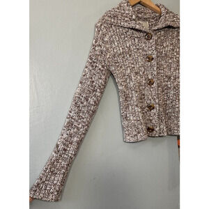 Energie long sleeve button front marled browns ribbed knit cropped cardigan sweater in Excellent pre-owned condition!