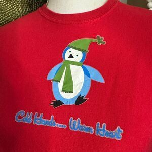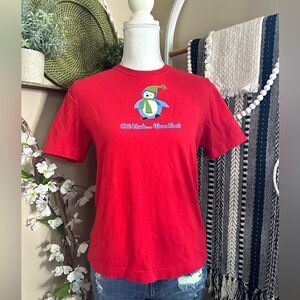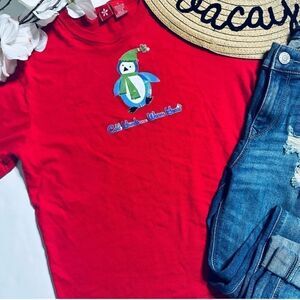 Y2K 2000s Holiday Christmas Penguin Baby Tee Short Sleeve Semi Cropped Shirt