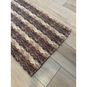 • Color/Pattern: Brown, tan, cream, and beige zig zag abstract stripes