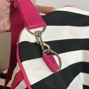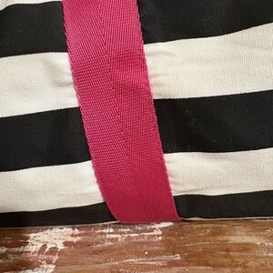 Y2K 2000s Victoria’s Secret Pink Duffle Bag Weekender Black White Stripe Strap