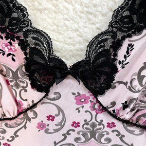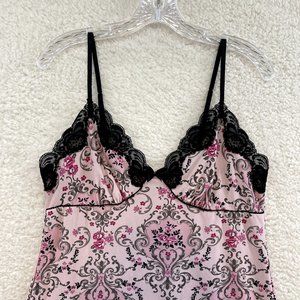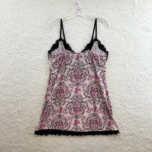 Y2K 2000s Whispers Pink Floral Swirl Slinky Stretch Lingerie Mini Slip Dress M