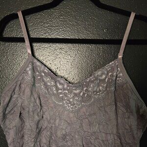 Y2K 2000s Women's Fairy Grunge Crinkle Gray Lace Trim XL Cami Tank Top