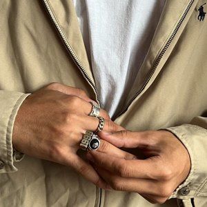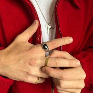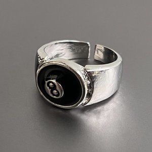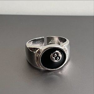 Y2K 2000s vintage retro style 8 ball chrome silver ring