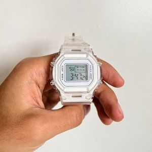 Y2K 2000s vintage retro style white transparent digital watch