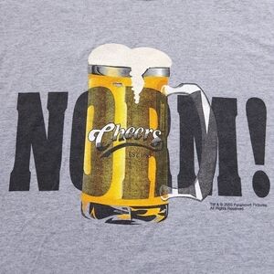 Y2K 2003 NBC Experience Store Cheers Beer Stein Norm Tshirt sz XL. Back has lines from Norm on the back. Good used condition, don't see any stains. Does have a hole on the beer glass. Flat measurements approximately
