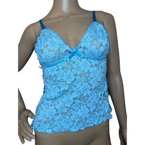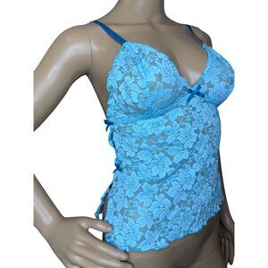 Y2K 2003 Victorias Secret Blue Floral Lace Babydoll Lingerie Top Bottoms Set Siz