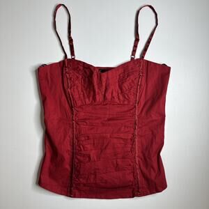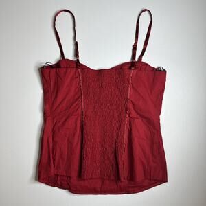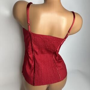 Y2K 2b Bebe Red Ruched Corset Cami Top M Smocked Back Rockabilly Pinup Bombshell