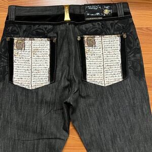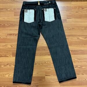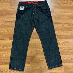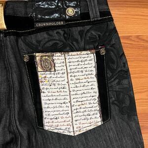 Y2K 38x35 Crown Holder Hip Hop Rap Skater Baggy Wide Dark Jeans Black