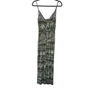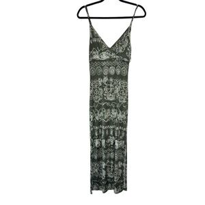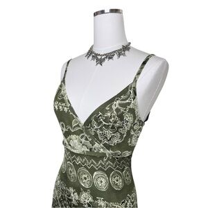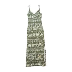 Y2K 579 Green Boho Maxi Slit V Neck Dress Size Extra Small
