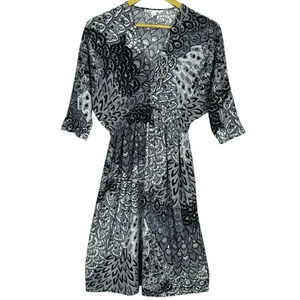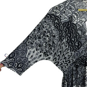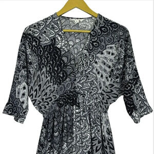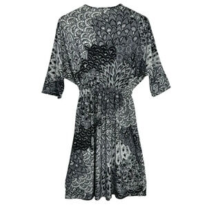Y2K 5th & Love Baby Doll Midi Dress XL Paisley Black White V-Neck Fairy Grunge
