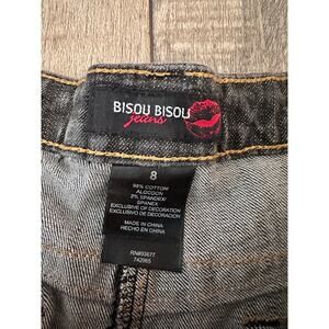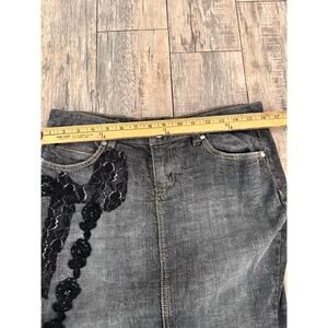 Y2K 90s 2000s Bisou Bisou Women's Black Fishtail Embroidered Denim Skrit Size 8