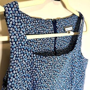 Y2K 90s Aqua Blues 96% Cotton, 4% Spandex Blue Floral Body Cotton Dress L