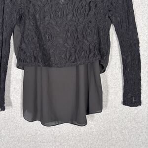 Y2K 90s BCX Top Small Lace Sheer Layered Whimsigoth Witch Coquette Corp Career Work Office Business Church Goth Grunge Punk Emo Rock Moto Biker Boho Bohemian Hippie 80s Long Sleeve Chiffon