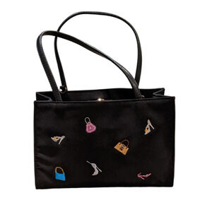 Y2K 90s Black Mini Bag Purse Clutch Rectangle Embroidered Girly Barbie Feminine