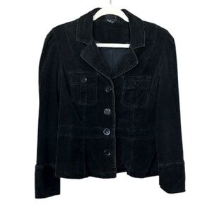 Stunning fitted corduroy jackets in black! Fits like a Juniors M in my opinion. Let me know if you have questions
