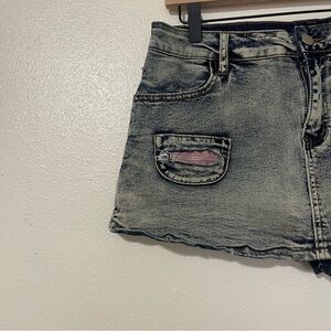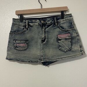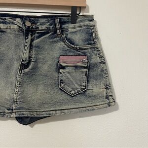 Y2K 90s Denim Mini Skort Mini Skirt With Shorts Vintage Size Large