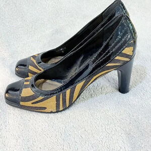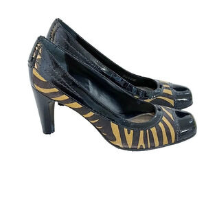 Y2K 90s Diego Di Lucca Women Tiger Pump Heels 6 Square Leather Rockabilly