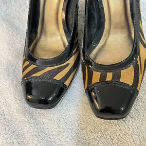 Diego Di Lucca Womens Brown Yellow Pump Heels 6 Stiletto Square Toe Tiger Animal Print