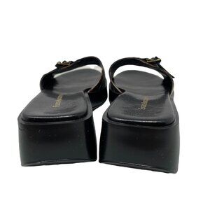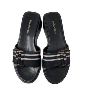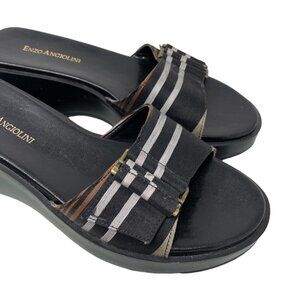 Y2K 90s Enzo Angiolini LIO Slide Wedge Sandals Womens 7 Open Toe Striped Black