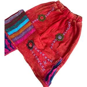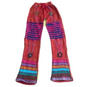 Y2K 90’s Groovy Hippie Pants Embroidered Patchwork Gypsy Colorful Sz S Flare