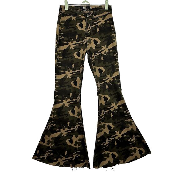 L&B Lucky & Blessed Bell Bottom Flared Jeans Camo Sz 4 (27x28) Y2K 90"s Stretch