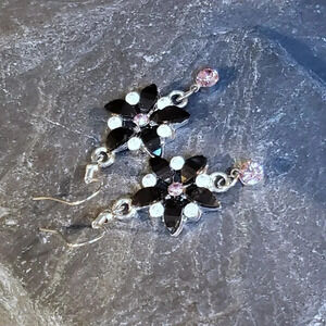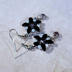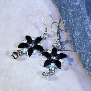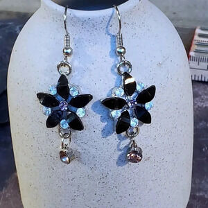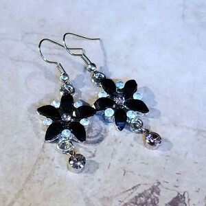 Y2K 90s New Vintage Black Clear Silver Crystal Star Dangle Charm Earrings