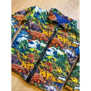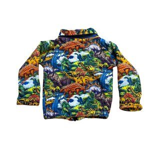 Y2K 90s Toddler Dinosaur All Over Print Fleece Jacket With Colorful Print & Zip-