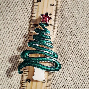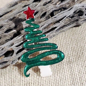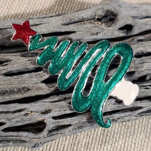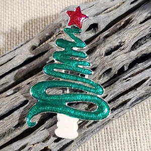 Y2K 90s Vintage Christmas Modern Tree Star Swirl Enamel Sweater Pin Brooch