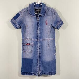 Y2K 90's Vtg Baby Phat Girls Denim Full Zip Short Sleeve Dress