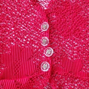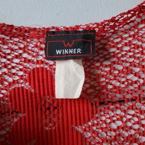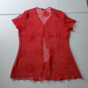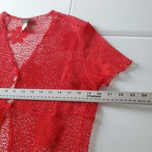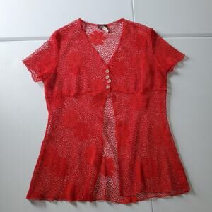 Winner Sheer Mesh Cardigan Womens Medium Red Floral Short Sleeve Button Top