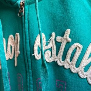 Y2K AEROPOSTALE NEW YORK TEAL FULL ZIP CURSIVE HOODIE SWEATSHIRT