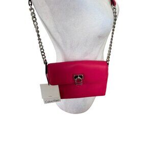 Y2K AESTHETIC HOT PINK LEATHER CHAIN LOCK LINK CALVIN KLEIN SHOULDER BAG NWT