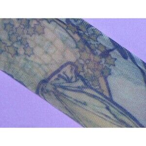 Y2K ALPHONSE MUCHA Art NOUVEAU Print Mesh Long Sleeve Blouse W/Rhinestones. XS-S