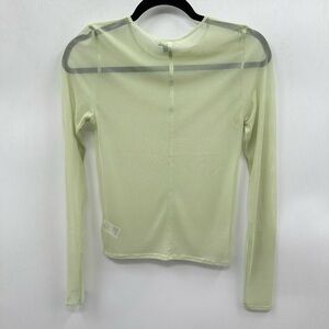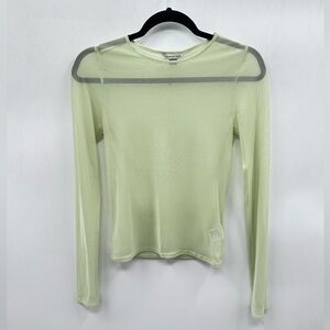 AMERICAN EAGLE Mini mesh woman green sheer poly elastane long sleeve boho top