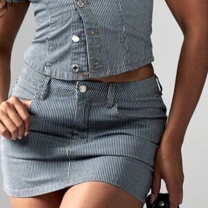 Fabulous Y2K vintage 1990's zip front mini railroad ticking mini skirt!