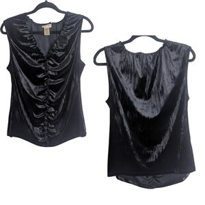 Y2K APOSTROPHE Black Velvet Baby Doll Stretch Top Coquette Size Large